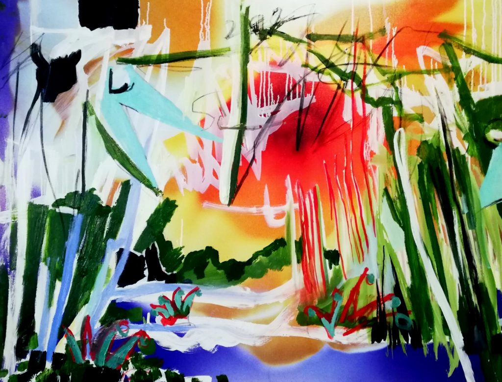 ÖL auf Leinwand, 110 X 85 cm, 1. Juni 2020Schwedischer Wald, Öl, Kreiden und Kohle auf Leinwand, 60 X 40 cm, 2018Panta rhei (Hin und wieder sollten wir von Lethes Wassern trinken), Öl auf Leinwand, 92 X 90 cm, 2018Flucht ins Idyll VII, Öl auf Leinwand, 54 X 76 cm, 2018